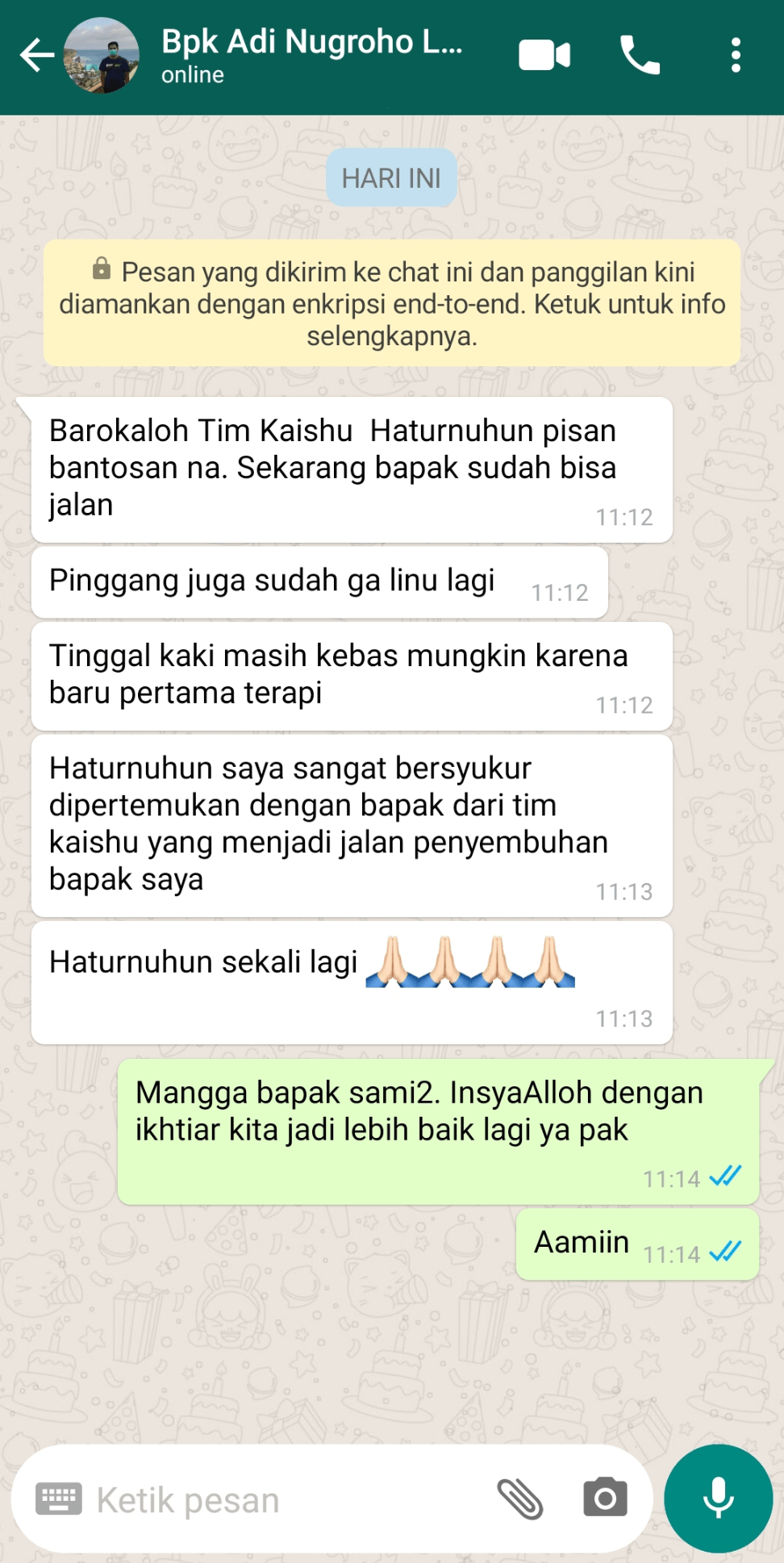 Teknik KAISHU akan mencari sumber permasalahan di syaraf Anda, baik itu sumbatan di syaraf maupun peredaran darah. Kemudian dengan teknik KAISHU kami akan memperbaiki sumbatan tersebut sehingga tubuh kembali pada kondisi normalnya.