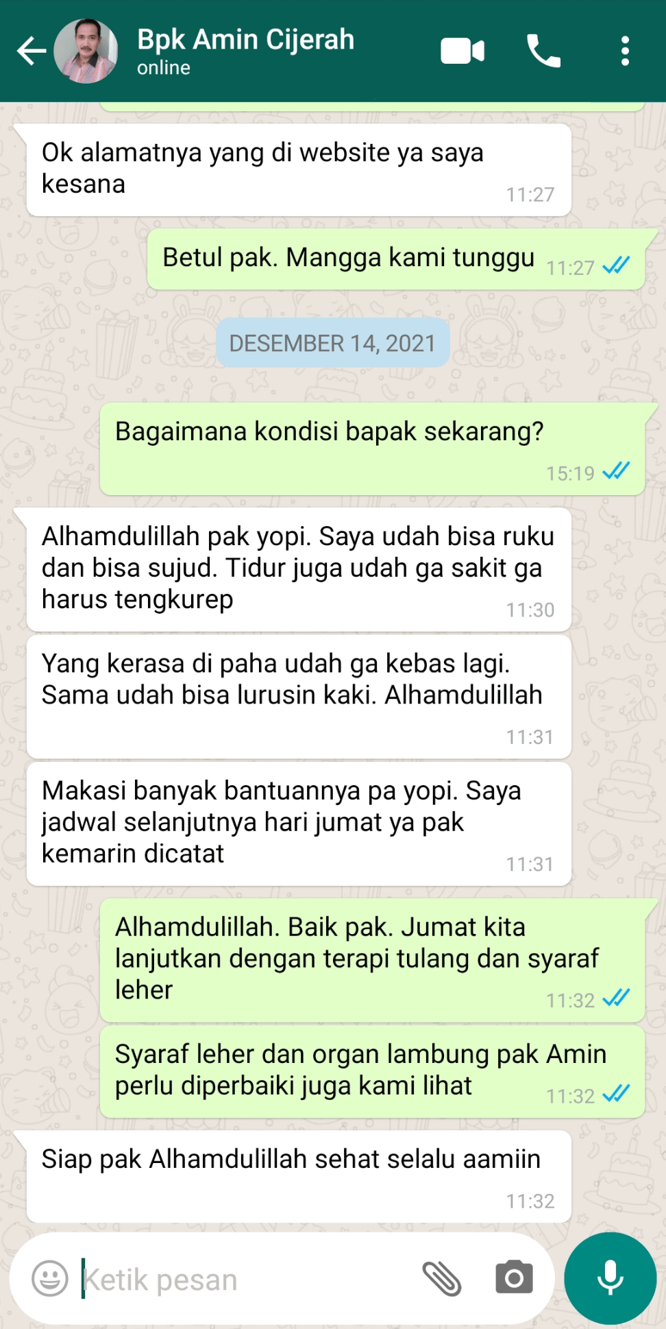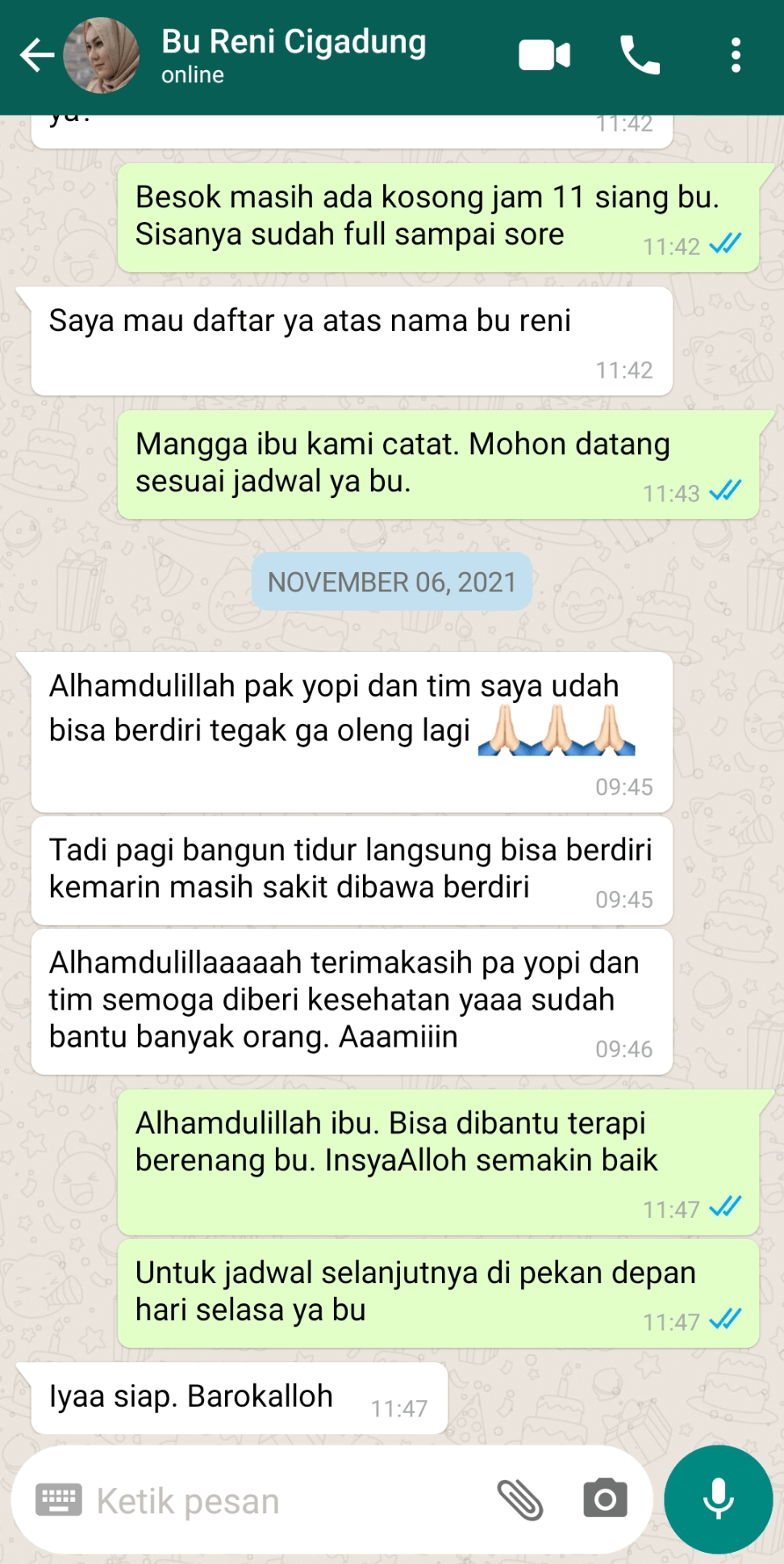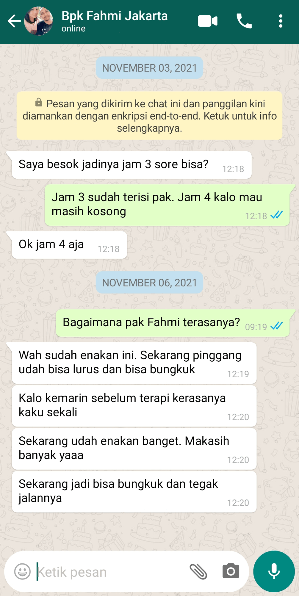 Jika Anda penderita Back pain/lower back pain, tempat kami adalah tempat yang tepat menyembuhkannya. Kami akan mengidentifikasi akar permasalahan penyakit Anda dan merencanakan terapi terbaik menyembuhkannya.