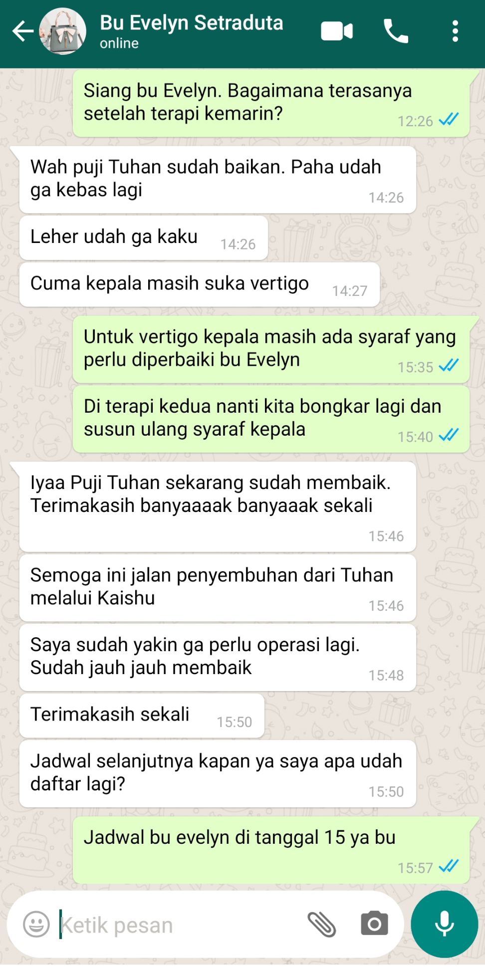 Mengembalikan kesehatan tanpa operasi, mempertahankan kesehatan tanpa obat kimia. Murni menggunakan teknik neurotik yang hanya dikuasai oleh terapis KAISHU.